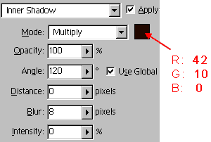 Go to Layer>Effects>Inner Shadow, follow my settings: | |||||||||||||||||||||||||||||||||||||||||||||||||||||||||||||||||||